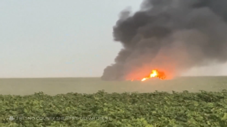 توثق لقطات حريقا هائلا يتصاعد من مكان تحطم مقاتلة “إف-35” بالقرب من قاعدة ليمور الجوية البحرية وسط كاليفورنيا مساء يوم الأربعاء. توثق لقطات حريقا هائلا يتصاعد من مكان تحطم مقاتلة “إف-35” بالقرب من قاعدة ليمور الجوية البحرية وسط كاليفورنيا مساء يوم الأربعاء.